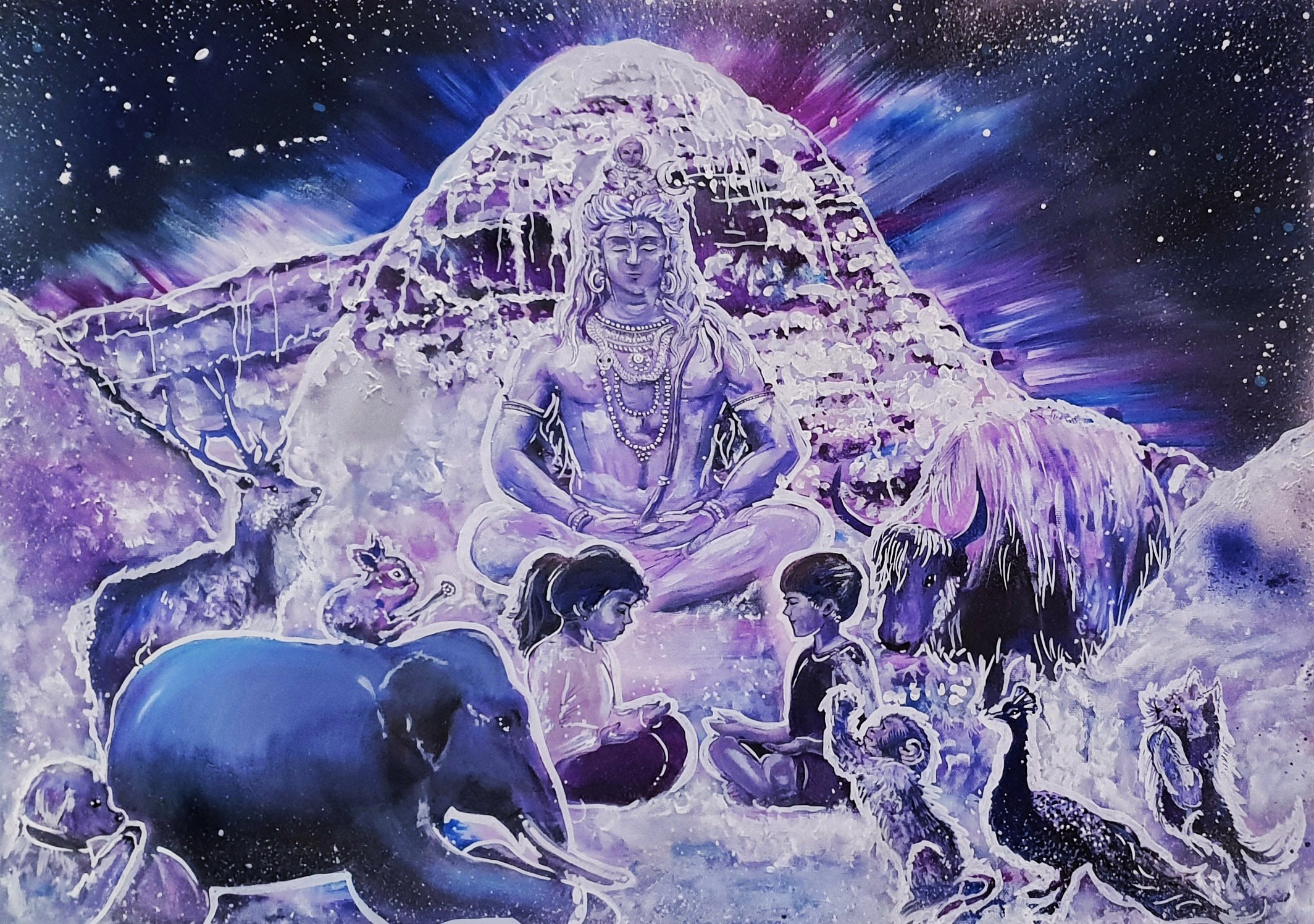 Mythology View fullsize Oneness with Shiva View fullsize View fullsize The Dance of Love : Radha-Krishna Yashoda & Krishna Mother to the Universe Swing with Ganesha View fullsize View fullsize Universal Mahavishnu A Walk in the Jungle : Glow in the Dark Painting View fullsize View fullsize No Buddy Like a Brother: Ganesh & Karthik View fullsize Jesus Krishna Ganesh View fullsize View fullsize